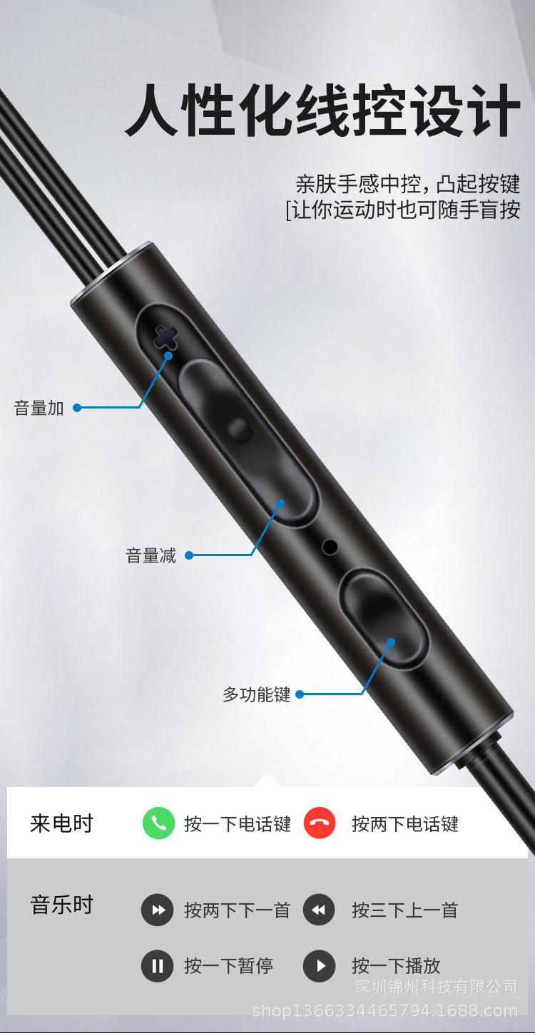 C1型号愉悦线控耳机适用安卓OPPO入耳式3.5M重低音运动游戏手机有线耳机