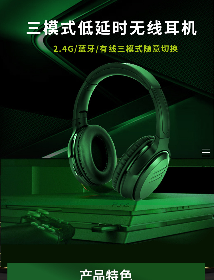 W7000 model green shark 2.4 G wireless game headset private model computer phone universal head noise canceling headset stereo Bluetooth